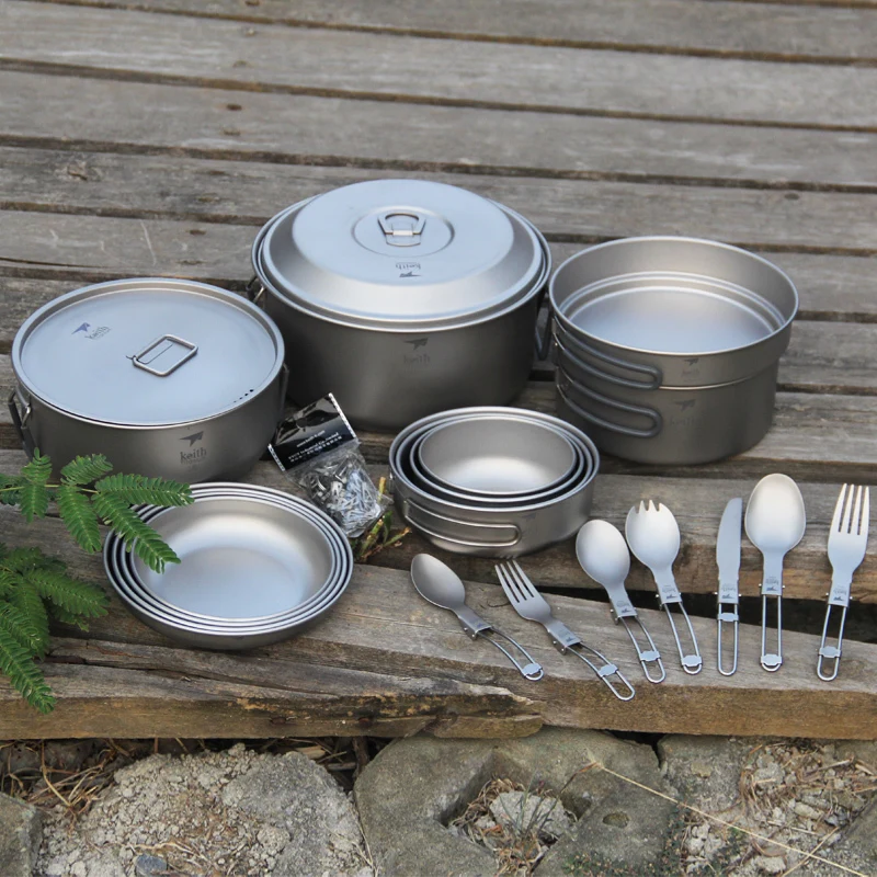 Best . (30% Off) Buy Keith Outdoor Camping 4-5 Person Titanium Soup Pot Pan Dish Plate Spoon Knife Fork Spork Durable Kitchenware Tableware Set Price Online.