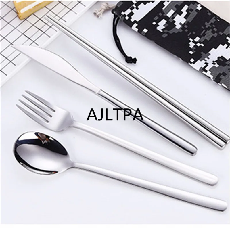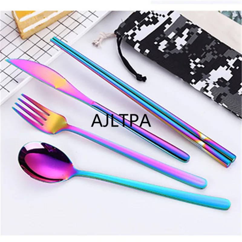 Product Name: 100set/lot Creative Stainless Steel Tableware Suit Cutlery Set Portable Travel Picnic Outdoor Dinnerware Set Kitchen Tool CT0171
