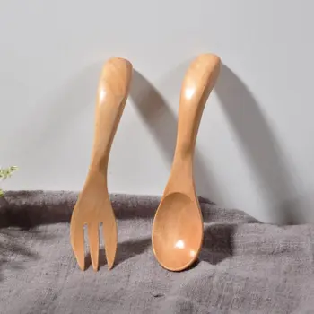 Product Name: Eco-friendly Simplicity Japanese Handmade Natural Wood Spoon+Fork Best Gift Wood Tableware F20173963