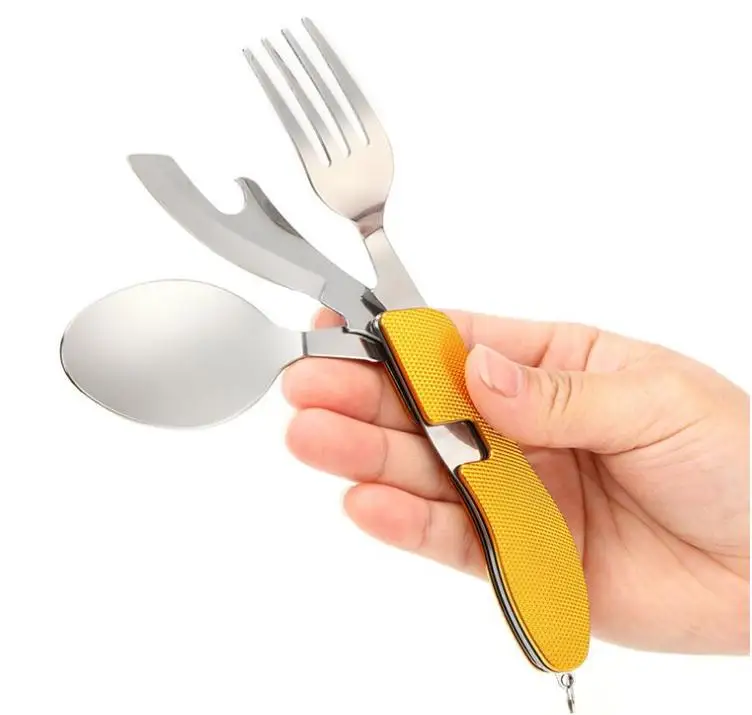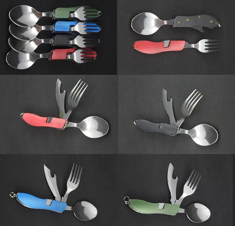 Best . (19% Off) Buy 240pcs Multi-function Outdoor Camping Picnic Tableware Stainless Steel Cutlery 4 In 1 Folding Dinnerware Set&bottle Opener Price Online.