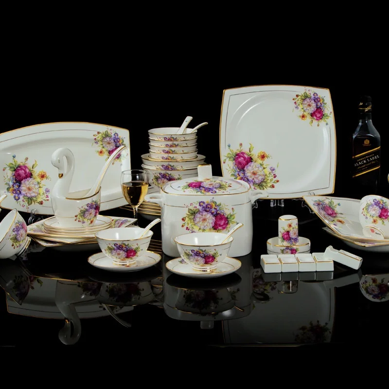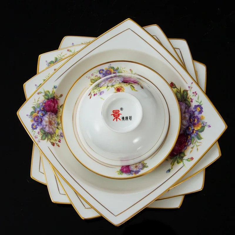 Special Offer Jingdezhen Luxury Bone Porcelain Tableware Set Bowl And Plate Household European Gold-inlaid Bowl And Plate Western-style Wed Discount 12% Today!