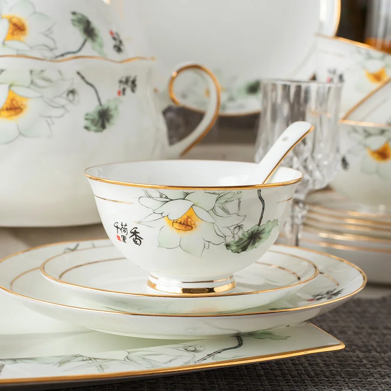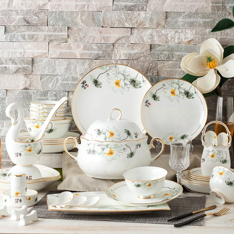 Product Name: European Guci Porcelain Tableware Set High-grade Gift Gift Jingdezhen Ceramic Combination Set Bowl And Disk Set Household
